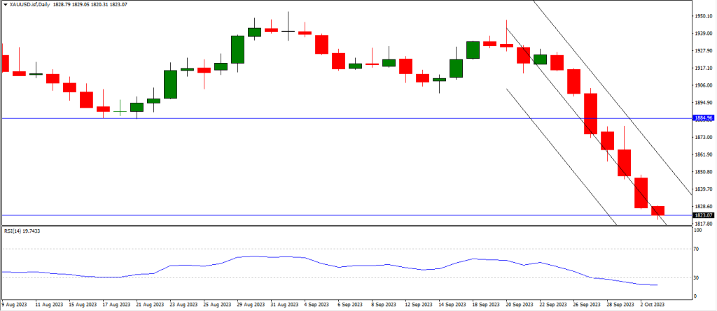Pada hari Senin 02 Oktober 2023, harga emas terus merosot untuk sesi keenam secara berturut-turut, mencapai level terendah dalam tujuh bulan. Penguatan dolar dan prospek suku bunga AS yang lebih tinggi telah membuat emas kehilangan kilauannya.